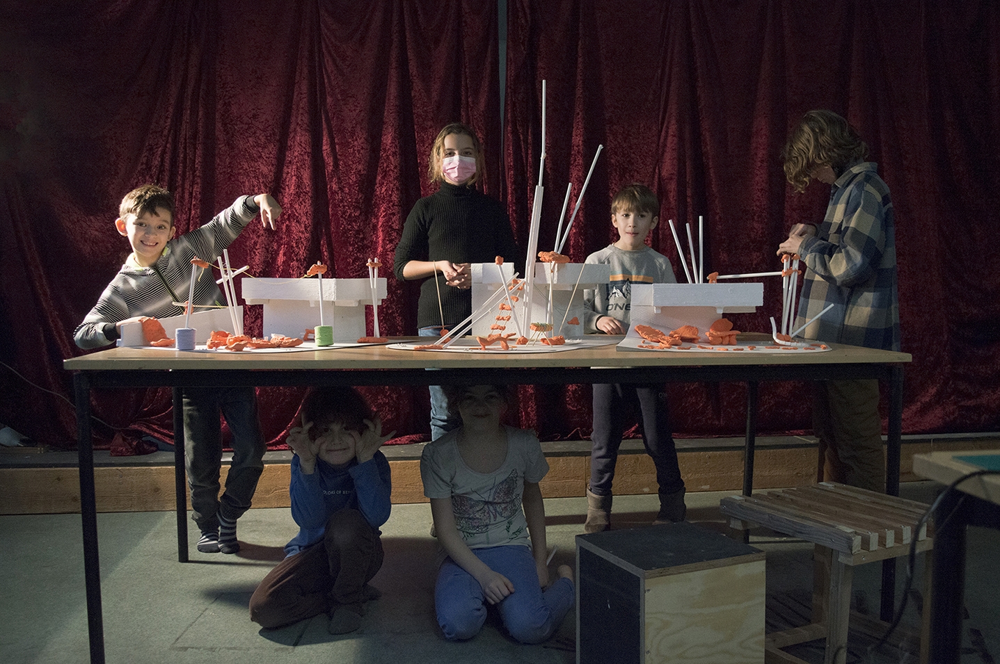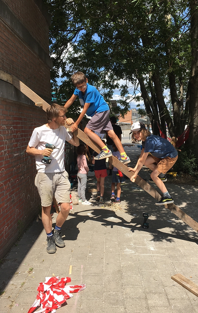 Along an involvement in the developments around the site, a series of workshops for kids are launched through Archikids, to re-imagine the anti-architecture / defensive city and test actual interventions on site. An influential Brussels politician, Ans Persoons (schepen Stedenbouw, Openbare Ruimte) is invited to a presentation of the kids on site.